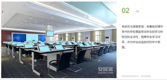 有研究與調(diào)查表明,有著良好硬件條件的學(xué)校更能帶動(dòng)學(xué)生的學(xué)習(xí)積極性和主動(dòng)性,提高學(xué)生學(xué)習(xí)效率,并為學(xué)生創(chuàng)造良好的學(xué)術(shù)氛圍。