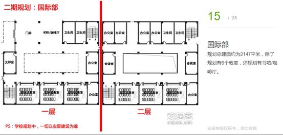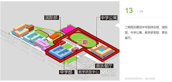 二期規(guī)劃建設(shè)中學(xué)部綜合樓、國際部、中學(xué)公寓、教學(xué)研發(fā)樓、音樂餐廳。
