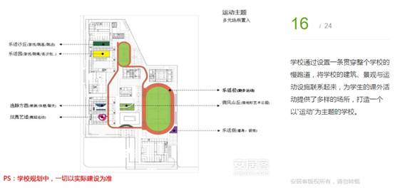 學(xué)校通過設(shè)置一條貫穿整個(gè)學(xué)校的慢跑道,將學(xué)校的建筑、景觀與運(yùn)動(dòng)設(shè)施聯(lián)系起來,為學(xué)生的課外活動(dòng)提供了多樣的場所,打造一個(gè)以“運(yùn)動(dòng)”為主題的學(xué)校。
