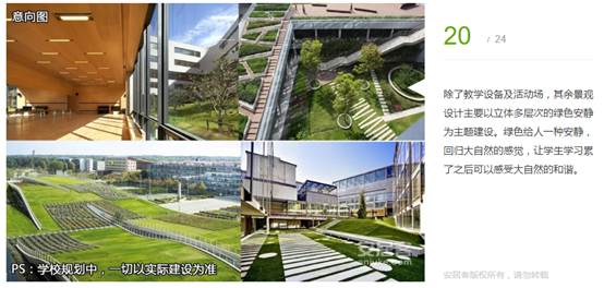 除了教學(xué)設(shè)備及活動(dòng)場,其余景觀設(shè)計(jì)主要以立體多層次的綠色安靜為主題建設(shè)。綠色給人一種安靜,回歸大自然的感覺,讓學(xué)生學(xué)習(xí)累了之后可以感受大自然的和諧。