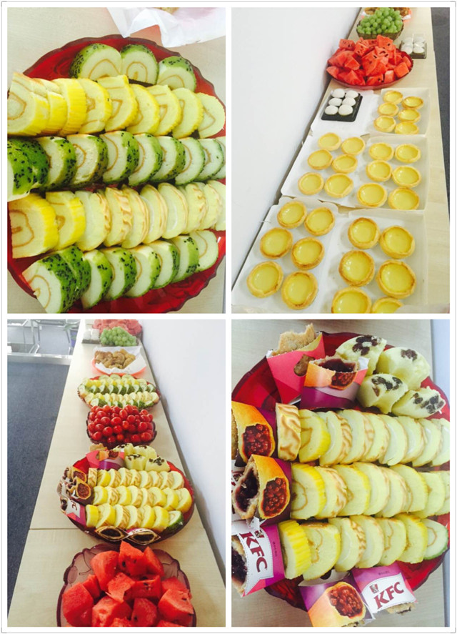 下午茶不單能趕走下午的瞌睡蟲,還能及時補充能量,恢復(fù)體力,華威公司因此很重視下午茶文化。除了日常在辦公室準(zhǔn)備好各種小零食、茶葉、咖啡以供大家及時補充能量,每周三、周五,人資行政部還會在下午3-4點間準(zhǔn)備豐盛的下午茶。美妙的下午茶時光,員工們聚在一起,有說有笑,品嘗著各種新奇美味的小點心,其樂融融。
